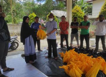 SUNGAIPENUH- Pada hari raya Idul Adha tahun 2021 ini, IAIN Kerinci bagikan kurban untuk Tenaga Harian Lepas (THL), security dan masyarakat sekitar kampus. Pemotongan hewan kurban dilakukan di Kampus 1 IAIN Koto Lolo, Rabu (21/7/2021).