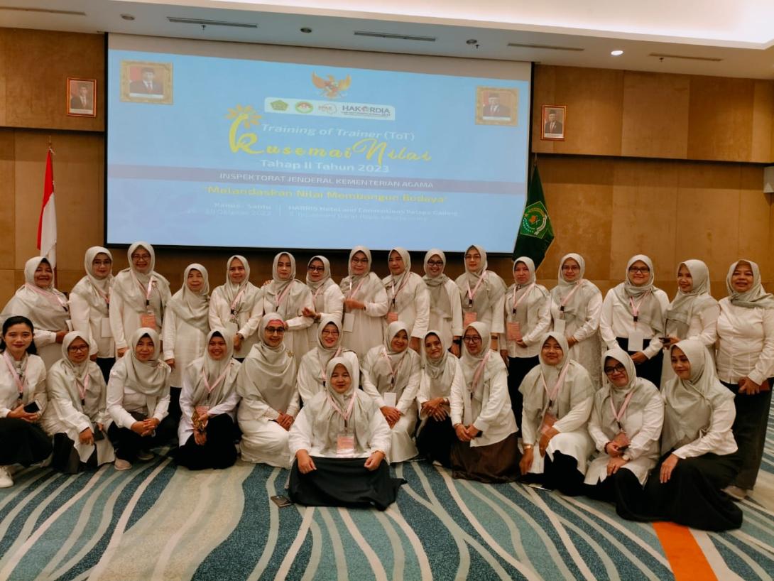 Jakarta IAIN News, Ny. Hafnanelly Asa’ari, ketua DW IAIN Kerinci mengikuti Training of Trainer (TOT) Kusemai Nilai Tahap II Tahun 2023 yang diselenggarakan oleh Inspektorat Jenderal (Itjen) Kemenag bertempat di Harris Hotel and Conventions Kelapa Gading tanggal 26 – 28 Oktober 2023.